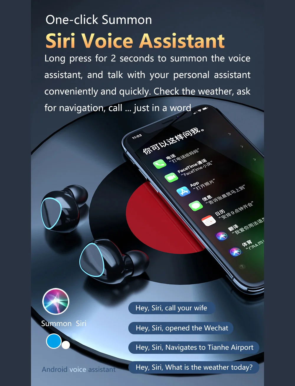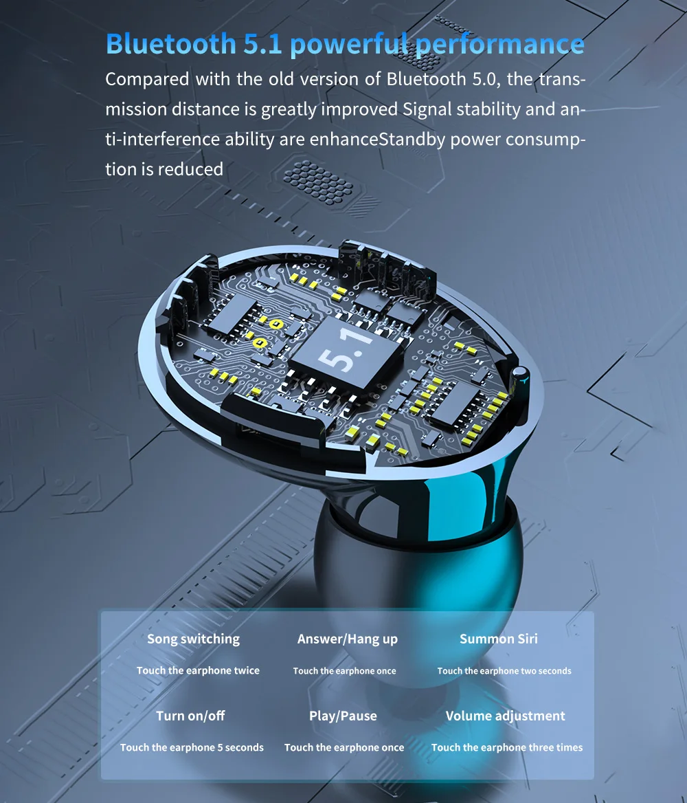 سماعات أذن لاسلكية بتقنية البلوتوث V5.1 Tws ، سماعات أذن داخلية لإلغاء الضوضاء Hi-Fi ، تحكم باللمس ، سدادات أذن استريو ، سماعات أذن رياضية مع ميكروفون